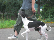 1ヶ月過ぎ~1ヶ月半頃の少し教育が入った頃から、面会時に飼い主様にもコントロールの練習をしていただきます。