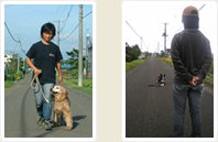 お預かりした始めの頃は、慣れない環境や飼い主様から離れた不安感から体調も崩しやすく、精神状態も安定しません。2~3週間は面会を控えていただき、毎日の散歩やお世話で環境になれてもらい、訓練士との親和をはかります。ご愛犬がなれてきた頃に最初の面会をしていただきます。その後は週1ペース位で面会、この頃から訓練士による訓練がはじまります。 |